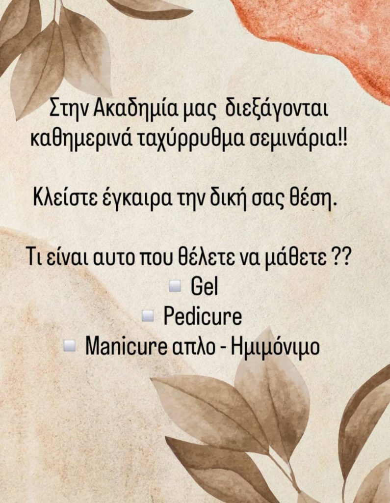 Με το εξειδικευμένο σεμινάριο BASIC NAILS θα αποκτήσεις όλες τις απαραίτητες γνώσεις και δεξιότητες για να κάνεις τα πρώτα σου επαγγελματικά βήματα στον χώρο της ομορφιάς.